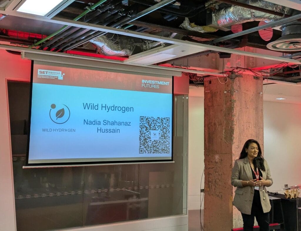 Nadia Shahanaz Hussain, Head of Marketing at Wild Hydrogen (now Equisera), represented the company on stage with a one-minute pitch introducing Wild Hydrogen (now Equisera)’s breakthrough technology, which transforms biogenic material and even plastic waste into commercially viable biomethane and hydrogen. Unlike conventional hydrogen production, Wild Hydrogen (now Equisera)’s process captures the carbon dioxide released during conversion and produces biochar, locking away carbon and creating additional environmental value.